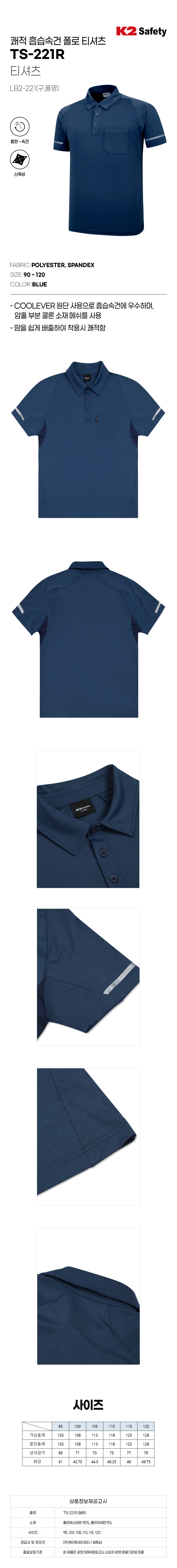 K2 세이프티 작업복 티셔츠 TS-221R (BL)