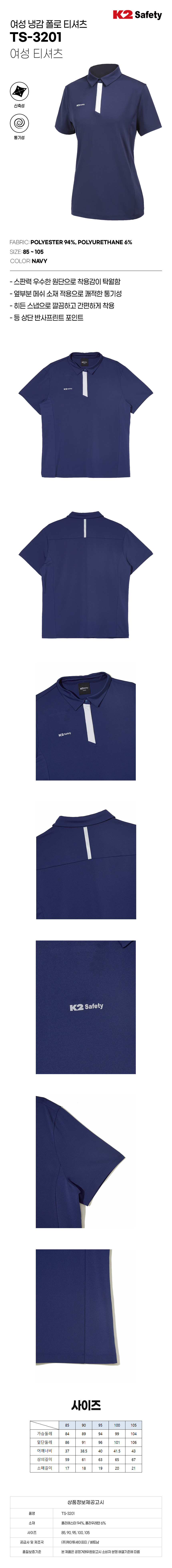 K2 세이프티 작업복 티셔츠 TS-3201 (여성용)