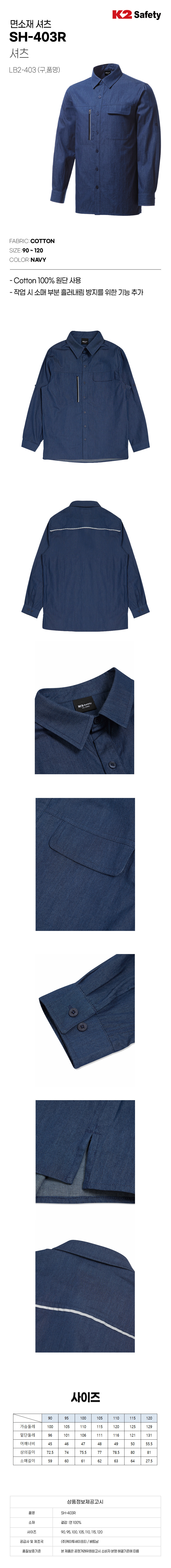 K2 세이프티 작업복 셔츠 SH-403R