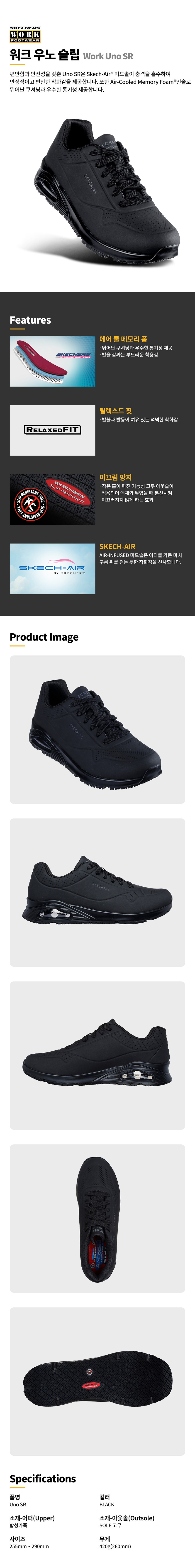 스케처스 워크 우노 슬립 작업화(선심X) (4인치)