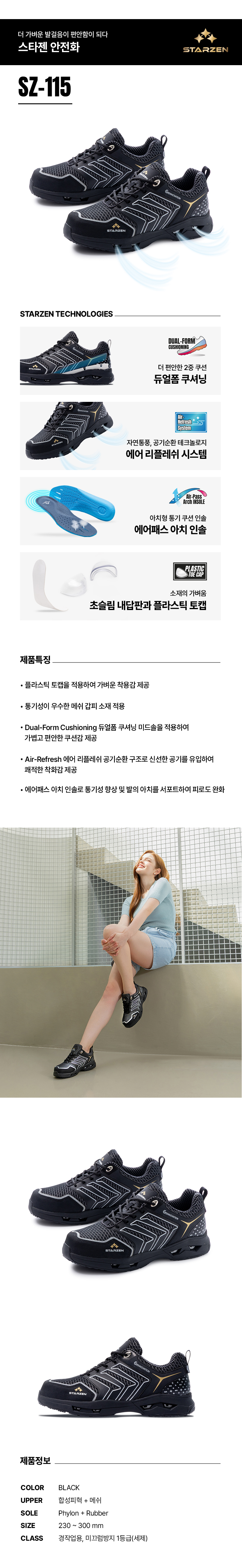 스타젠 안전화 경작업용 SZ-115,4",다이얼,BK