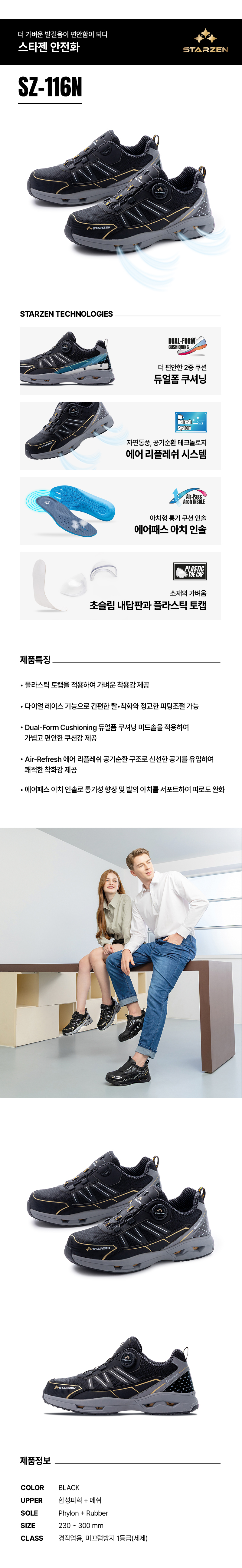 스타젠 안전화 경작업용 SZ-116N,4",다이얼,BK