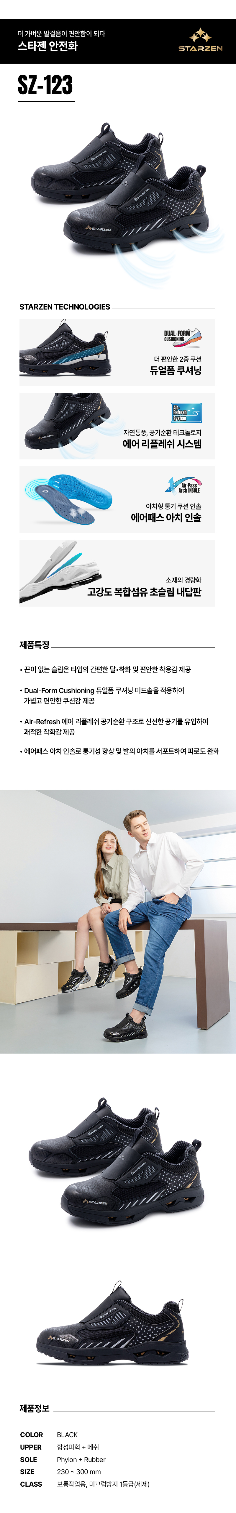안전화 스타젠 SZ-123,4",슬립온타입,BK